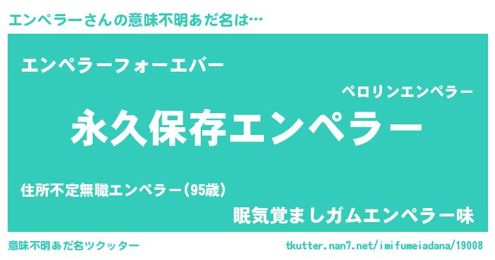 | 男性向けラノベタイトル風あだ名 | 『エンペラーに滅ぼされるだけの簡単なお仕事です』 |