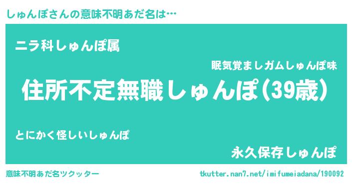 | ヒーロー風カッコイイあだ名 | 『仮面シュダー』『ネオシュンポ』 |