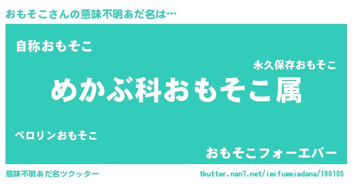 | 男性向けラノベタイトル風あだ名 | 『オモソコスレイヤー』『おもそこの憂鬱』 |
