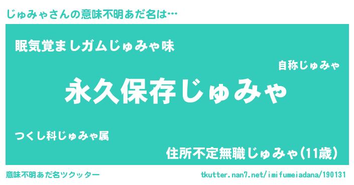 | ヒーロー風カッコイイあだ名 | 『ネオジュミャ』『友情の使者じゅみゃ』 |