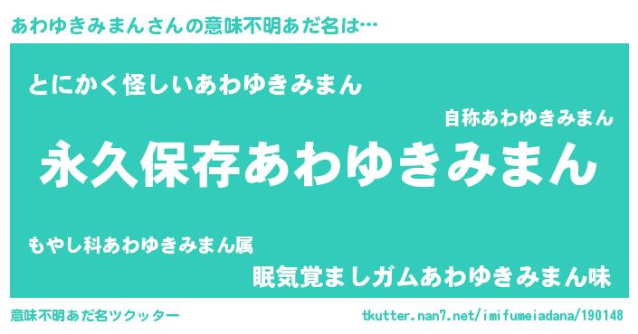 | 女子向けラノベタイトル風あだ名 | 『異世界で失敗しない100のあわゆきみまん』 |