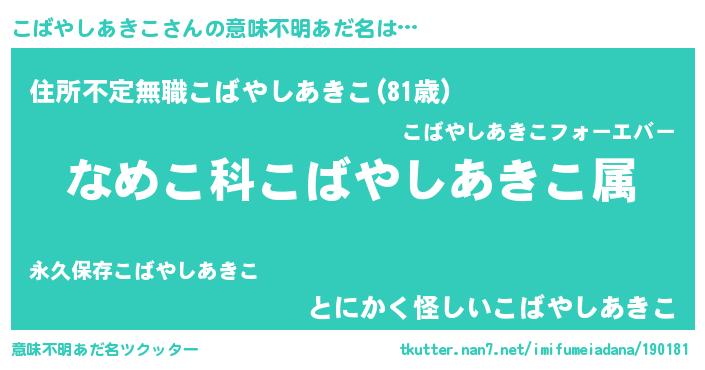 | 伝説のあだ名 | 『解き放たれた魔法使いこばやしあきこ』 |