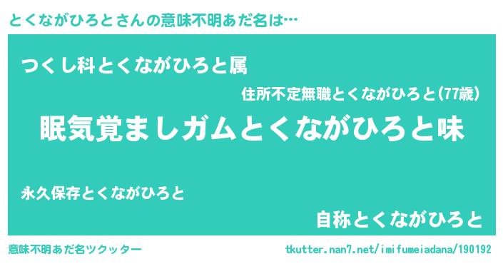 | 男性向けラノベタイトル風あだ名 | 『とくながひろとに滅ぼされるだけの簡単なお仕事です』 |