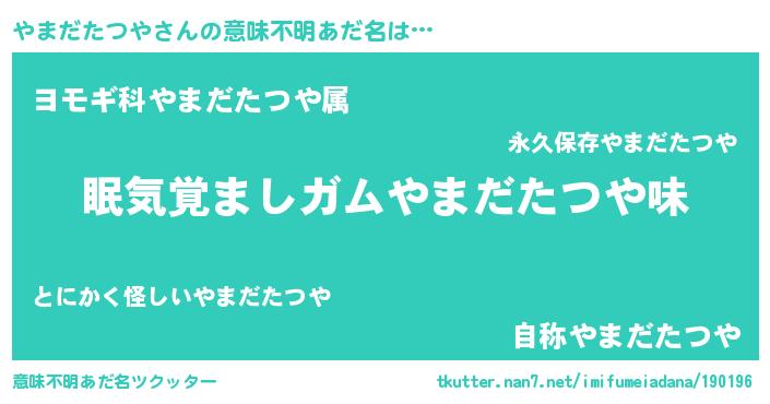 | 男性向けラノベタイトル風あだ名 | 『うちのやまだたつやが世界を掌握している!』 |