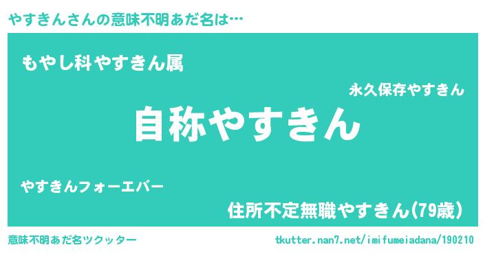 | ヘコむあだ名 | 『やすきん(小並感)』『なまこ酢』 |