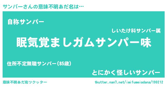 | 料理風あだ名 | 『バターが決め手!サンパー変身コクうまパスタ』 |
