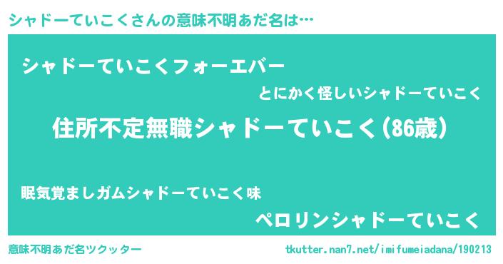 | ヒーロー風カッコイイあだ名 | 『仮面シャダー』『暗黒騎士シャ』 |