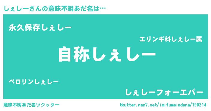 | 伝説のあだ名 | 『聞きしに勝る吟遊詩人しぇしー』 |