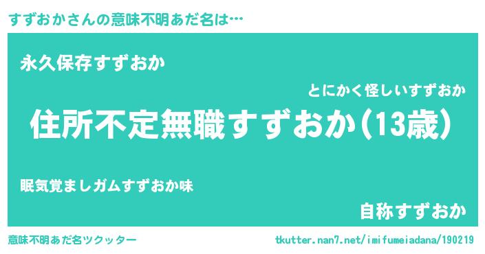 | 女子向けラノベタイトル風あだ名 | 『乙女ゲームの破滅フラグしかない悪役すずおかに転生してしまった…』 |