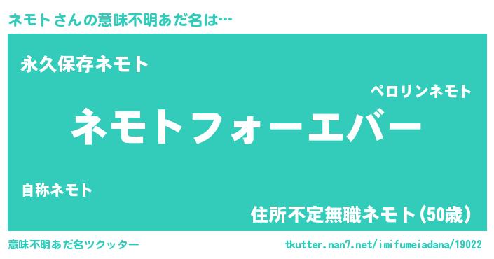 | ファンタジー風あだ名 | 『エターナルネモトー』『ネモディッシュ』 |