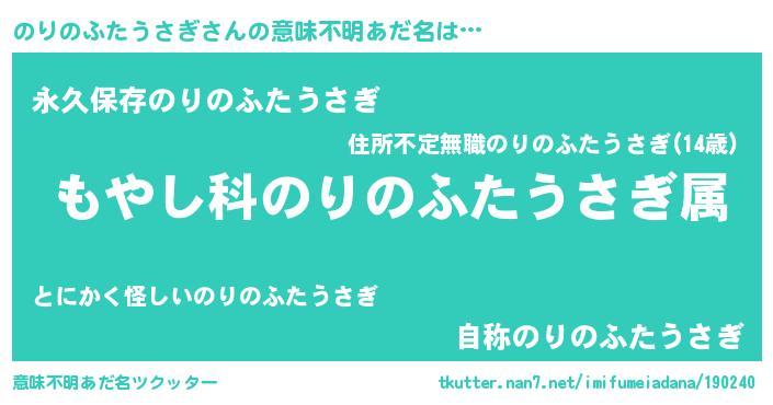 | 胡散臭い通販商品みたいなあだ名 | 『来世でも幸せになれる水素水…その名も「のりのふたうさぎ」』 |