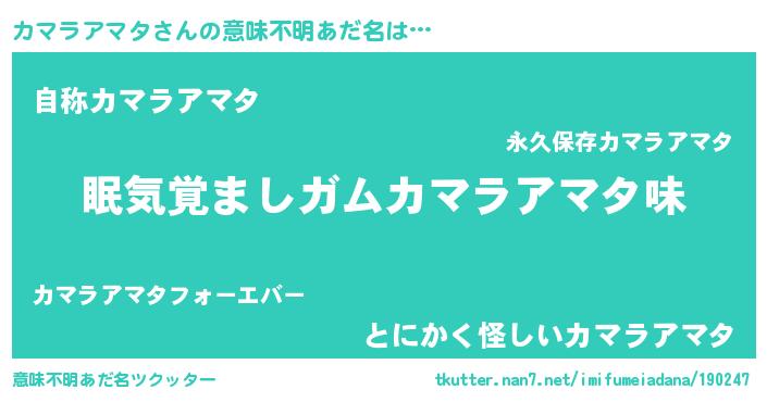 | 女子向けラノベタイトル風あだ名 | 『カマラアマタ恋絵巻』 |