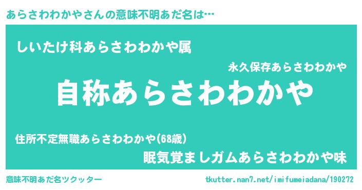 | 胡散臭い通販商品みたいなあだ名 | 『テレビで話題の冬虫夏草…その名も「あらさわわかや」』 |