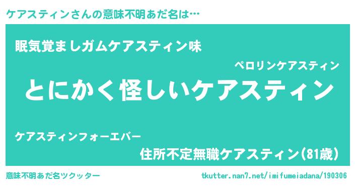 | 胡散臭い通販商品みたいなあだ名 | 『全米が絶賛したサプリメント…その名も「ケアスティン」』 |