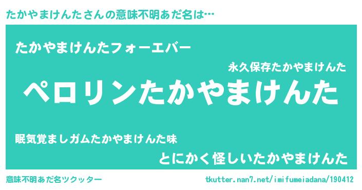 | 胡散臭い通販商品みたいなあだ名 | 『億万長者になれるブレスレット…その名も「たかやまけんた」』 |