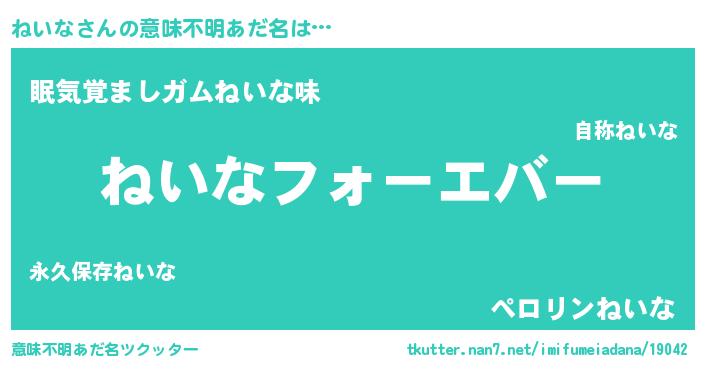 | 女子向けラノベタイトル風あだ名 | 『ねいなの雑貨屋さん』『闇のねいな』 |