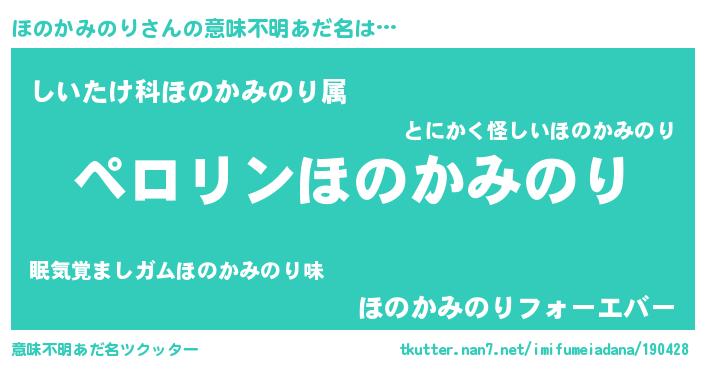 | 胡散臭い通販商品みたいなあだ名 | 『モテモテ間違いなし水晶球…その名も「ほのかみのり」』 |