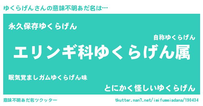 | 男性向けラノベタイトル風あだ名 | 『ユクラゲンスレイヤー』 |