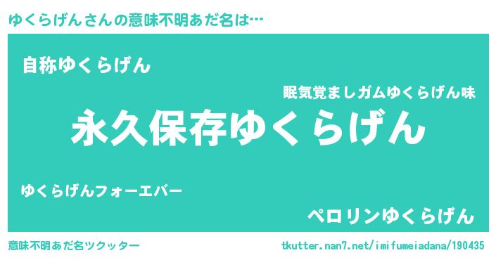 | ヘコむあだ名 | 『ゆくらげん(小並感)』『ゆくにゅー』 |