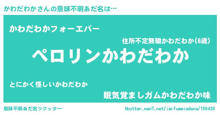 | 男性向けラノベタイトル風あだ名 | 『カワダワカアートオンライン』 |