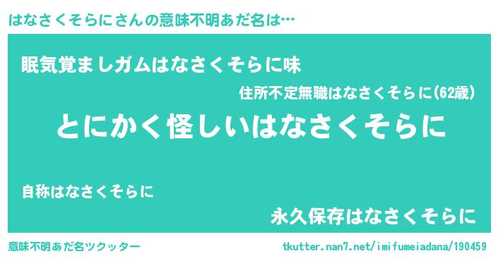 | ポケモン風あだ名 | 『ヒハナサクソラニ』『ハックウザ』 |