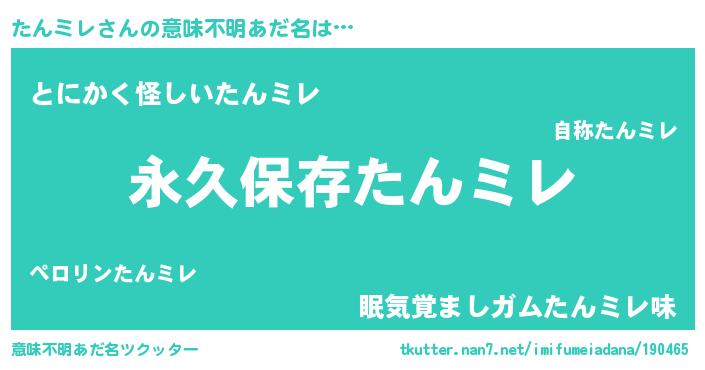 | 男性向けラノベタイトル風あだ名 | 『たんミレという概念が存在しない退屈な世界 』 |