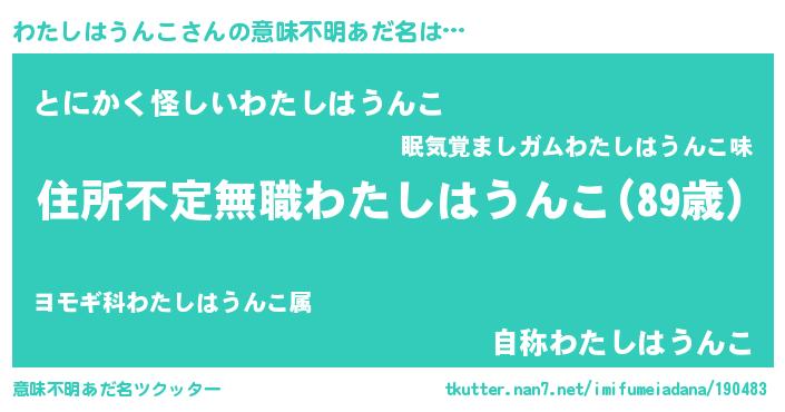 | ヘコむあだ名 | 『わたぷりん』『わたしはうんこ(震え声)』 |