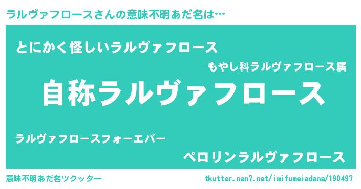 | 女子向けラノベタイトル風あだ名 | 『ラルヴァフロースなんてお断りですっ。』 |