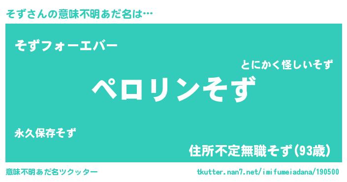 | ヒーロー風カッコイイあだ名 | 『スーパーソズ』『ウルトラそずマン』 |