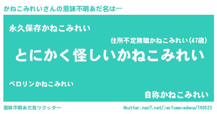 | 伝説のあだ名 | 『解き放たれた僧侶かねこみれい』 |