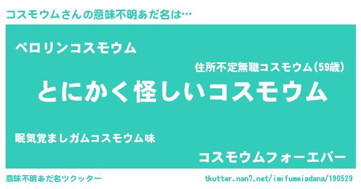 | ポケモン風あだ名 | 『ヒコスモウム』『コスチュウ』 |