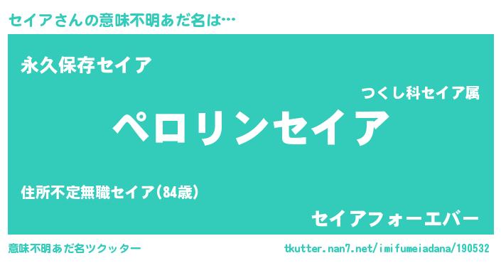 | ヒーロー風カッコイイあだ名 | 『スーパーセイア』『ネオセイア』 |