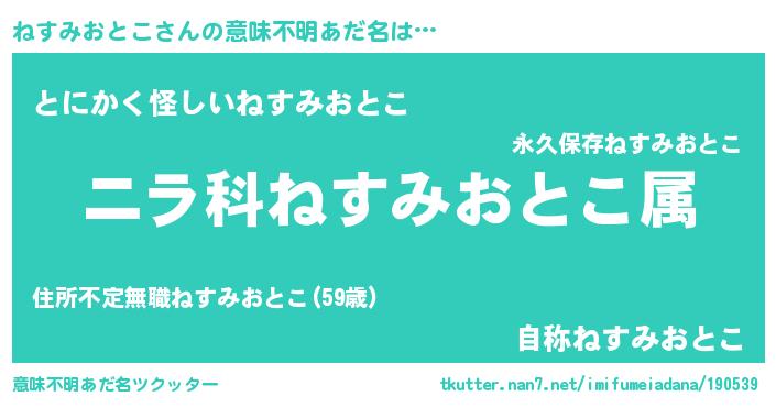 | 欧米人風あだ名 | 『トリンドルねすみおとこ』 |