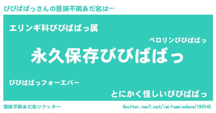 | 伝説のあだ名 | 『古文書に記された勇者びびばばっ』 |