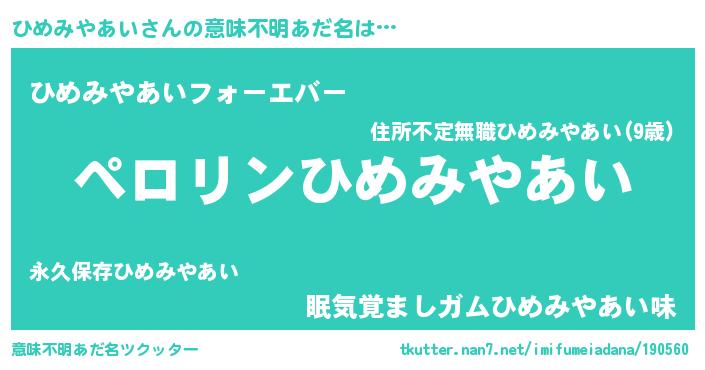 | 胡散臭い通販商品みたいなあだ名 | 『必ず成功するブレスレット…その名も「ひめみやあい」』 |