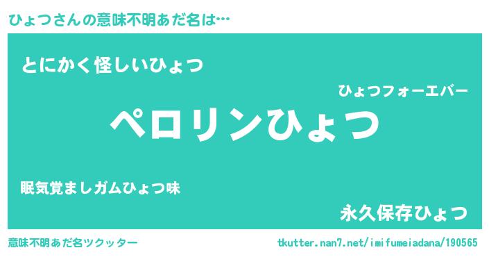 | ポケモン風あだ名 | 『ヒョチュウ』『ヒヒョツ』 |