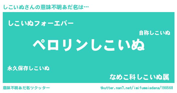 | 女子向けラノベタイトル風あだ名 | 『(仮)しこいぬのやんごとなき事情』 |