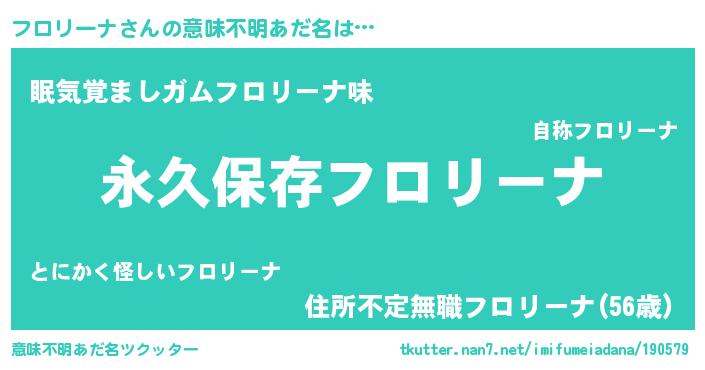 | 男性向けラノベタイトル風あだ名 | 『フロリーナという概念が存在しない退屈な世界 』 |