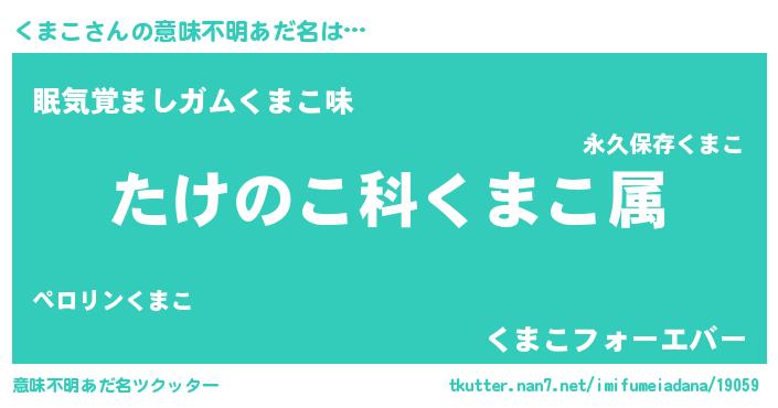 | 男性向けラノベタイトル風あだ名 | 『転生したらくまこだった件』 |
