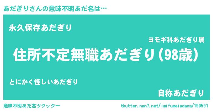 | 男性向けラノベタイトル風あだ名 | 『魔弾の王とあだぎり』 |