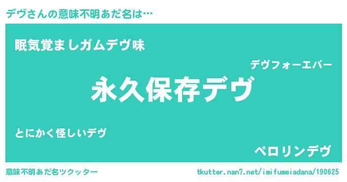 | 男性向けラノベタイトル風あだ名 | 『デヴという概念が存在しない退屈な世界 』 |