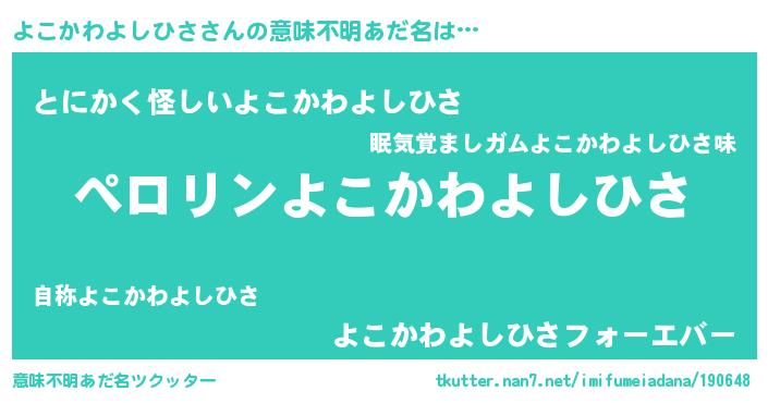 | 胡散臭い通販商品みたいなあだ名 | 『億万長者になれる水晶球…その名も「よこかわよしひさ」』 |