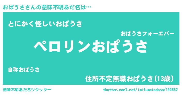 | 欧米人風あだ名 | 『マイケルおぱうさ』『ウサインおぱうさ』 |