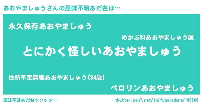 | ポケモン風あだ名 | 『アオゴンZ』『ヒアオヤマシュウ』 |