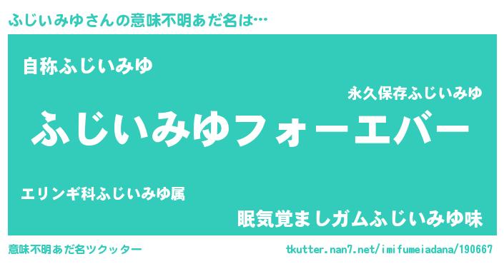 | 欧米人風あだ名 | 『ふじいみゆクリステル』 |