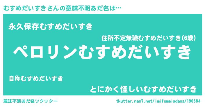 | ヒーロー風カッコイイあだ名 | 『スーパームスメダイスキ』 |