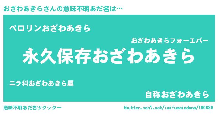 | ヘコむあだ名 | 『おざわあきら(遠い目)』『おざにゅー』 |