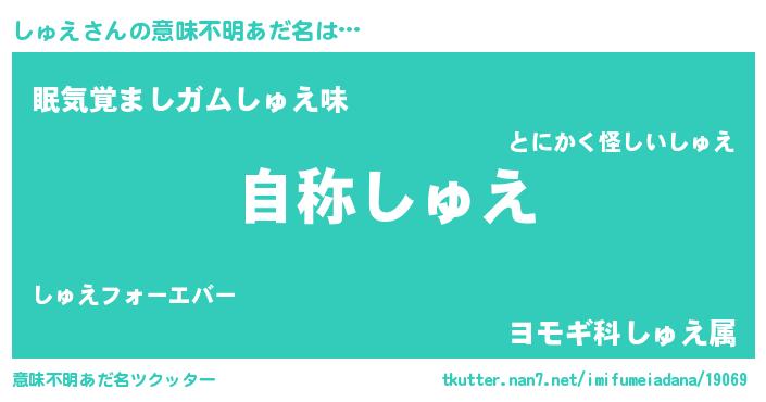 | ヘコむあだ名 | 『しゅぷりん』『豆乳』『しゅにー』 |