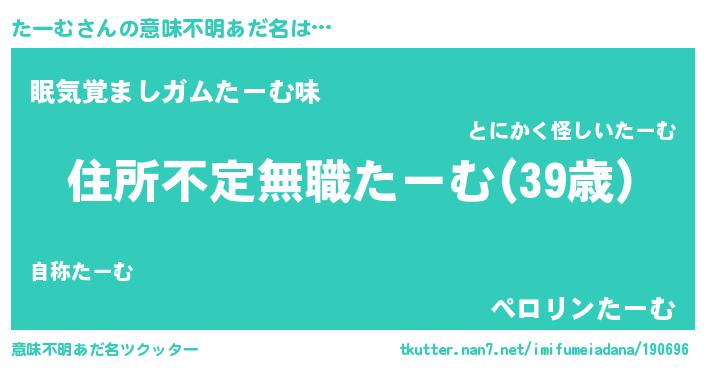 | 男性向けラノベタイトル風あだ名 | 『魔弾の王とたーむ』『たーむの憂鬱』 |