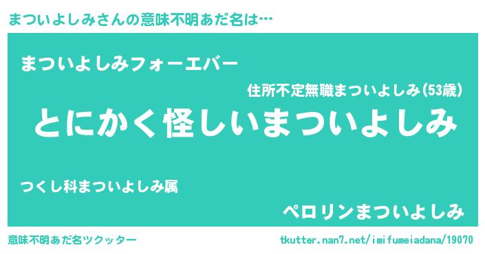 | ポケモン風あだ名 | 『ヒマツイヨシミ』『マツイダネ』 |